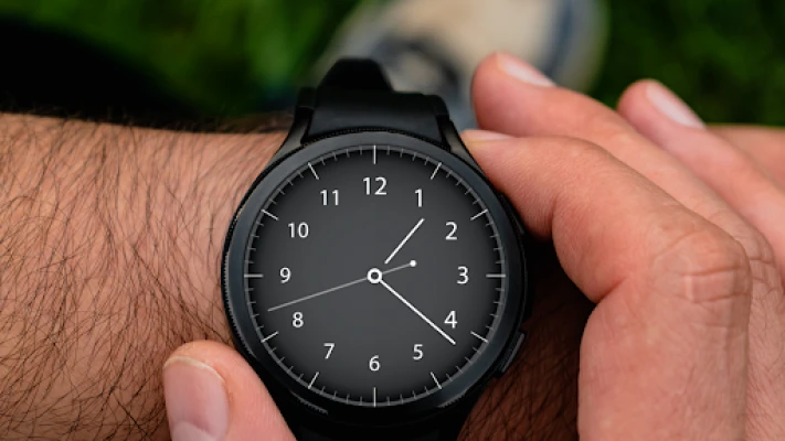 With a sharp black dial, subtle hour markings, and precise hand movement, it’s perfect for users who value both elegance and practicality in a Wear OS experience.