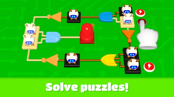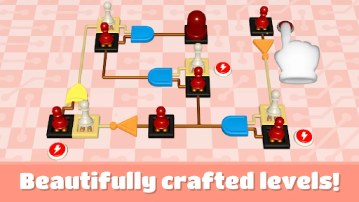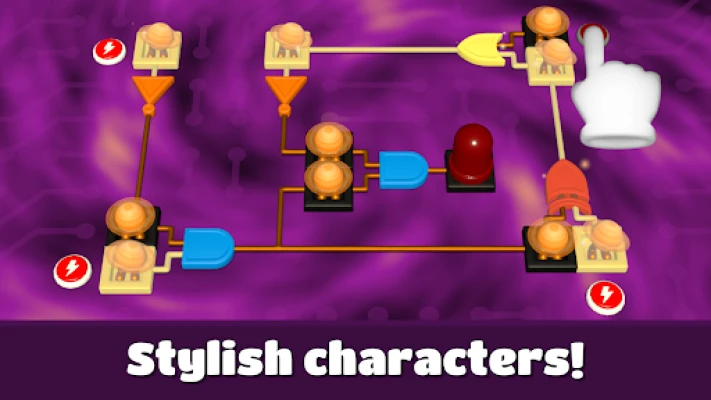 Each level gives you a circuit with inputs that can be flipped on or off, and your job is to find the right combination of inputs that light up the LED output. The circuits are filled with interconnected logic gates and animated characters which always show the inputs and outputs of every gate.