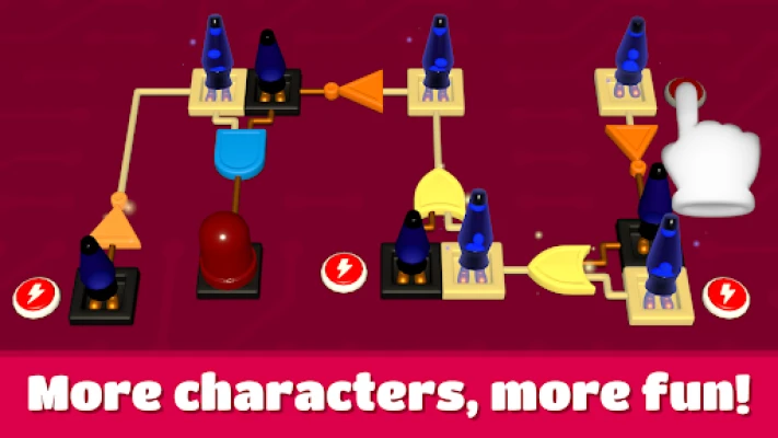 Besides the main game circuit puzzles, there are also bonus levels where you have to charge up a grid of characters, and if you can beat the bonus level you'll get another character that you can play as. Each character comes with its own unique theme which completely transforms the look and feel of the game, creating the opportunity for loads of replayable fun by going back and experiencing old levels with new characters.