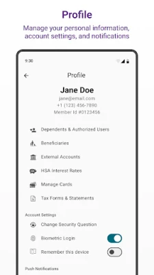 - Investments: Manage your HSA investments. View performance, research funds, and place trades.